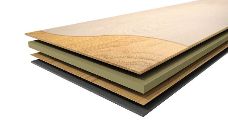 2-Schicht-Parkett wird vollflächig verklebt. Das sorgt nicht nur für eine besonders gute Wärmeübertragung auf Fußbodenheizungen, sondern reduziert auch die Bewegung des Holzes.