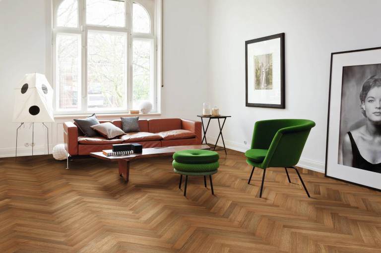 Der größte Pluspunkt ist die unvergleichliche Ruhe. Durch die Verklebung ist der Boden mit dem Untergrund fest verbunden, Raumschall und Trittschallgeräusche werden auf ein absolutes Minimum reduziert – und das ganz ohne zusätzliche Trittschalldämmung. Zudem arbeitet vollflächig verklebtes Parkett weniger und kann somit ohne Trennschienen auf größeren Flächen verlegt werden. Auch bei der Verlegung auf Fußbodenheizung oder -kühlung ist dies von Vorteil. Zudem ist die Wärmeübertragung deutlich effizienter bei verklebtem Parkettboden, insbesondere wenn man 2-Schicht Parkett verwendet. Und dabei musst du dir über die Renovierung keine Sorgen machen, denn Parkett ist, je nach Serie, mehrfach abschleifbar. Die beste Methode, um einem älteren Holzboden wieder Schönheit und Frische wie am ersten Tag zu verleihen.