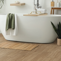 Sundt designgulv til alle rumforhold, stabilt i konstruktionen og egnet til gennemgående fugtige rum.