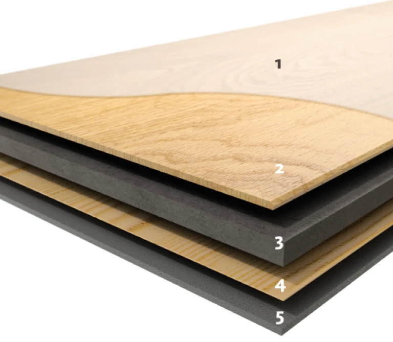 - The core board, the backbone of the floor, is constructed with a special moisture-protected HDF board that ensures maximum dimensional stability.