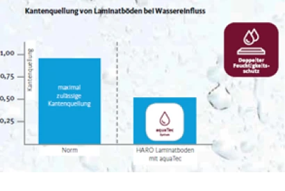 The HARO Laminate floors are suitable for any room - even if it gets damp. Thanks to the special aquaTec system, our HARO Laminate can withstand everyday moisture, e.g. from wet shoes, really well.