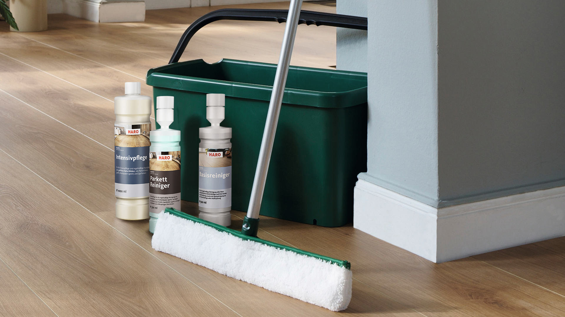 Para adaptar de forma óptima el producto de limpieza y cuidado al revestimiento del suelo, existe una combinación de limpiador y producto de cuidado en el sistema modular de HARO. También recomendamos utilizar nuestro limpiador básico antes del cuidado intensivo. No obstante, todos los productos de limpieza son casi idénticos en cuanto a su aplicación y al uso de accesorios de cuidado como mopas y cubos.