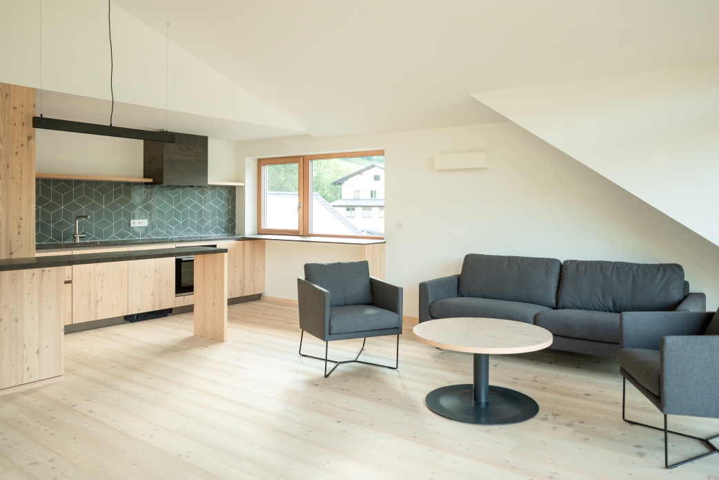 HARO a pris un grand plaisir à contribuer au ré-agencement des chambres et suites de l’hôtel avec des planches larges à l’ancienne dont l’aspect et le toucher se fondent à merveille dans ce nouveau décor. Le mélèze blanc puro apporte la touche finale aux chambres à l’architecture ouverte et baignée de lumière. L’association du caractère du mélèze et du format généreux des lames confère une exceptionnelle sensation d’espace aux 16 pièces, en particulier aux vastes appartements. Au final, le parquet HARO sublime la décoration des chambres, qui fait la part belle au bois d’origine locale, offrant ainsi aux hôtes de l’établissement une expérience authentique et familière, idéale pour un séjour pleinement ressourçant.